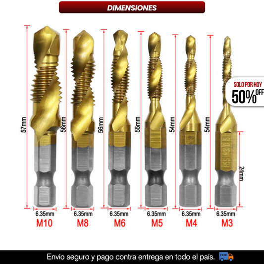 50% DE DESCUENTOJUEGO X6 BROCAS 3 EN 1 PERFORA, ROSCA Y AVELLANA