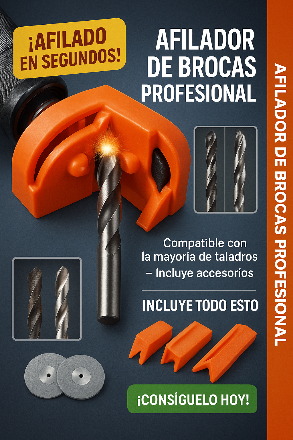 KIT AFILADOR DE BROCAS Y CUCHILLOS PROFESIONAL + GUÍA DE USO GRATIS
