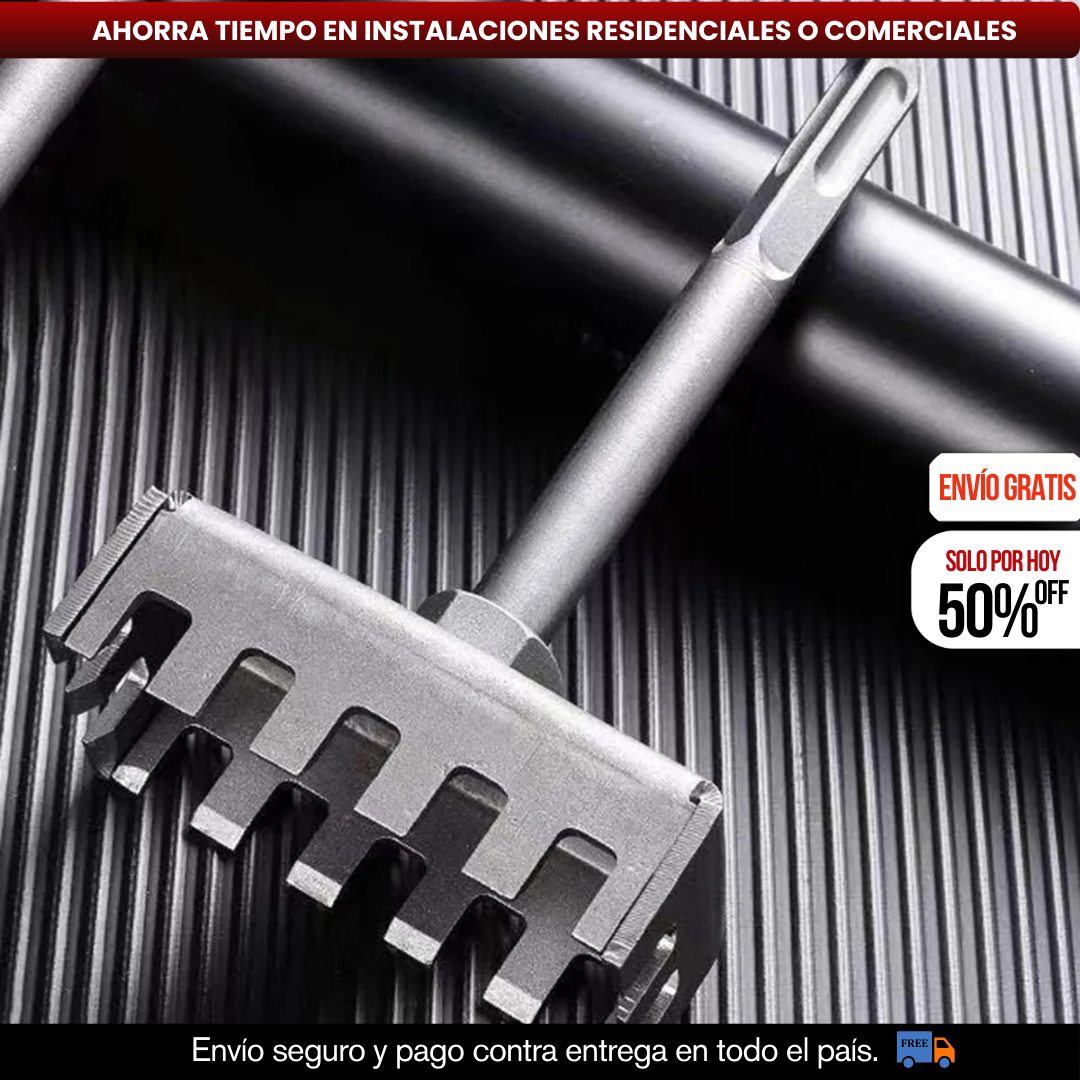 Su cabezal reforzado con múltiples dientes permite desbastar y abrir cavidades en concreto o block de forma uniforme, evitando fracturas innecesarias alrededor del área de trabajo.