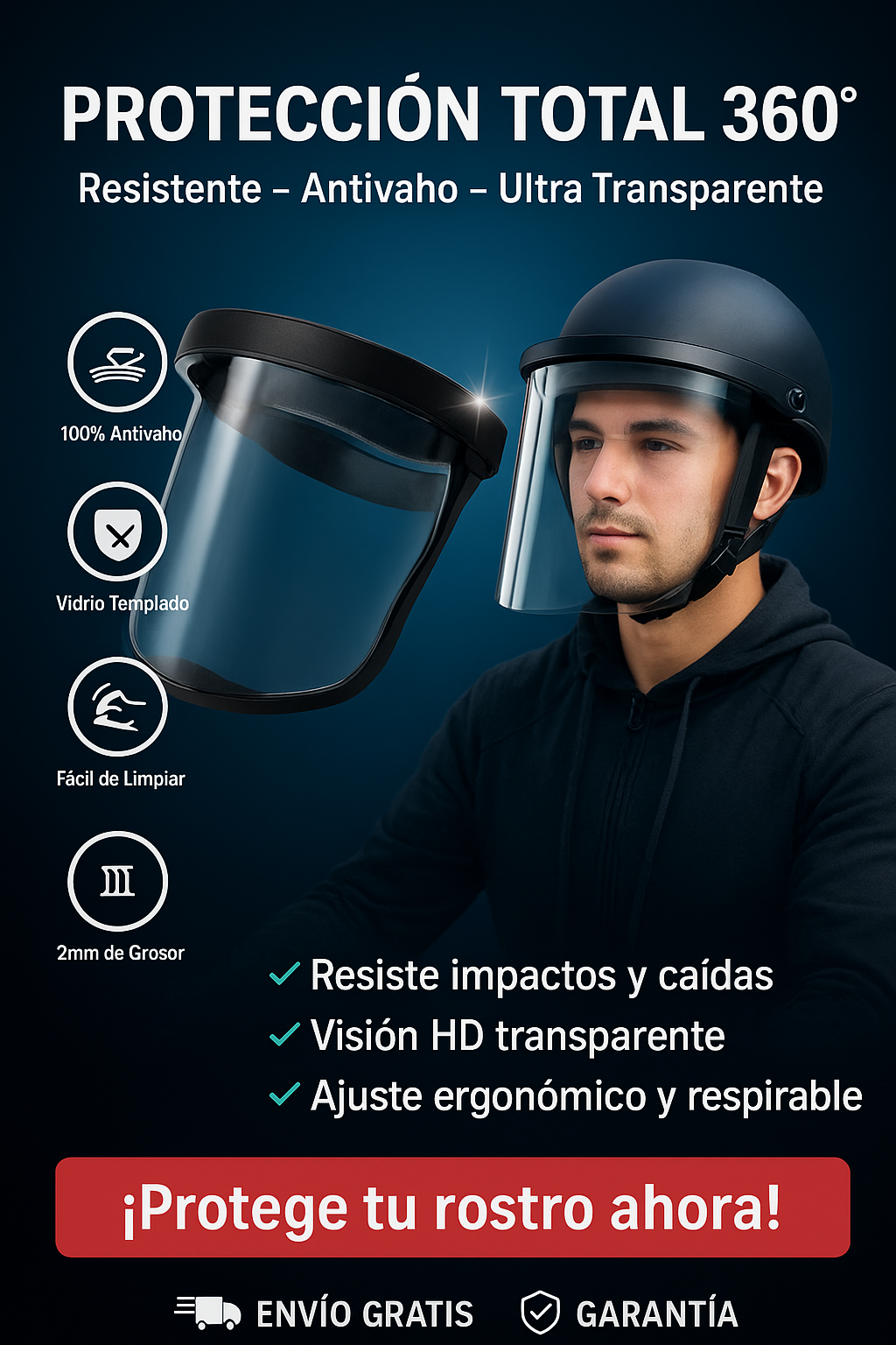 Protección total de frente a mentón.