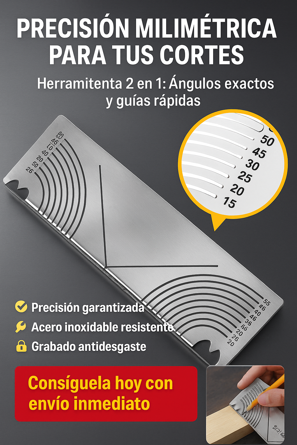 GUÍA ANGULAR MULTIFUNCIÓN | ACERO INOXIDABLE TEMPLADO + GUÍA DIGITAL GRATIS
